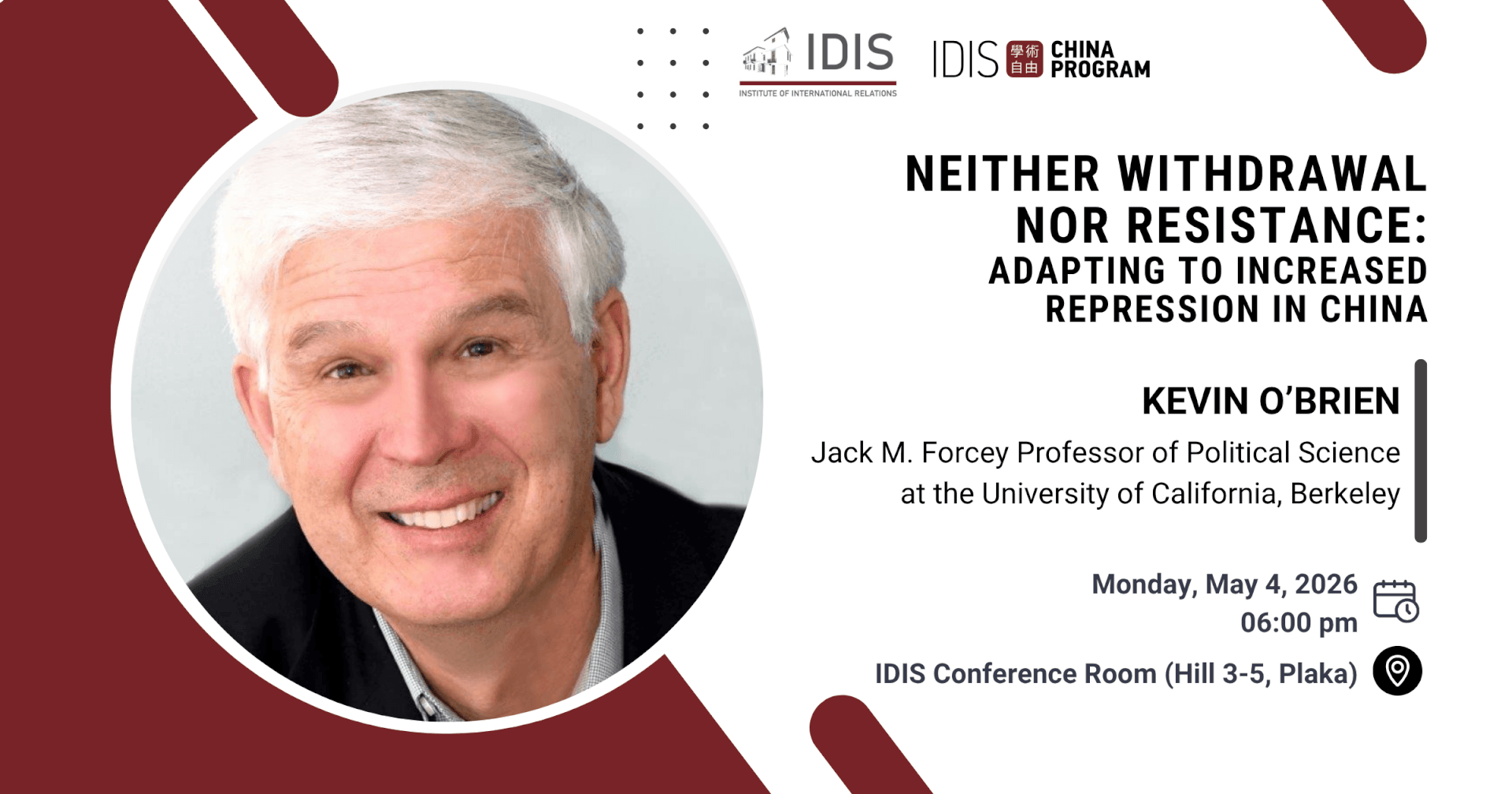 ADD to calendar ΙDIS China Program is pleased to invite you to a lecture titled: Neither Withdrawal Nor Resistance: Adapting to