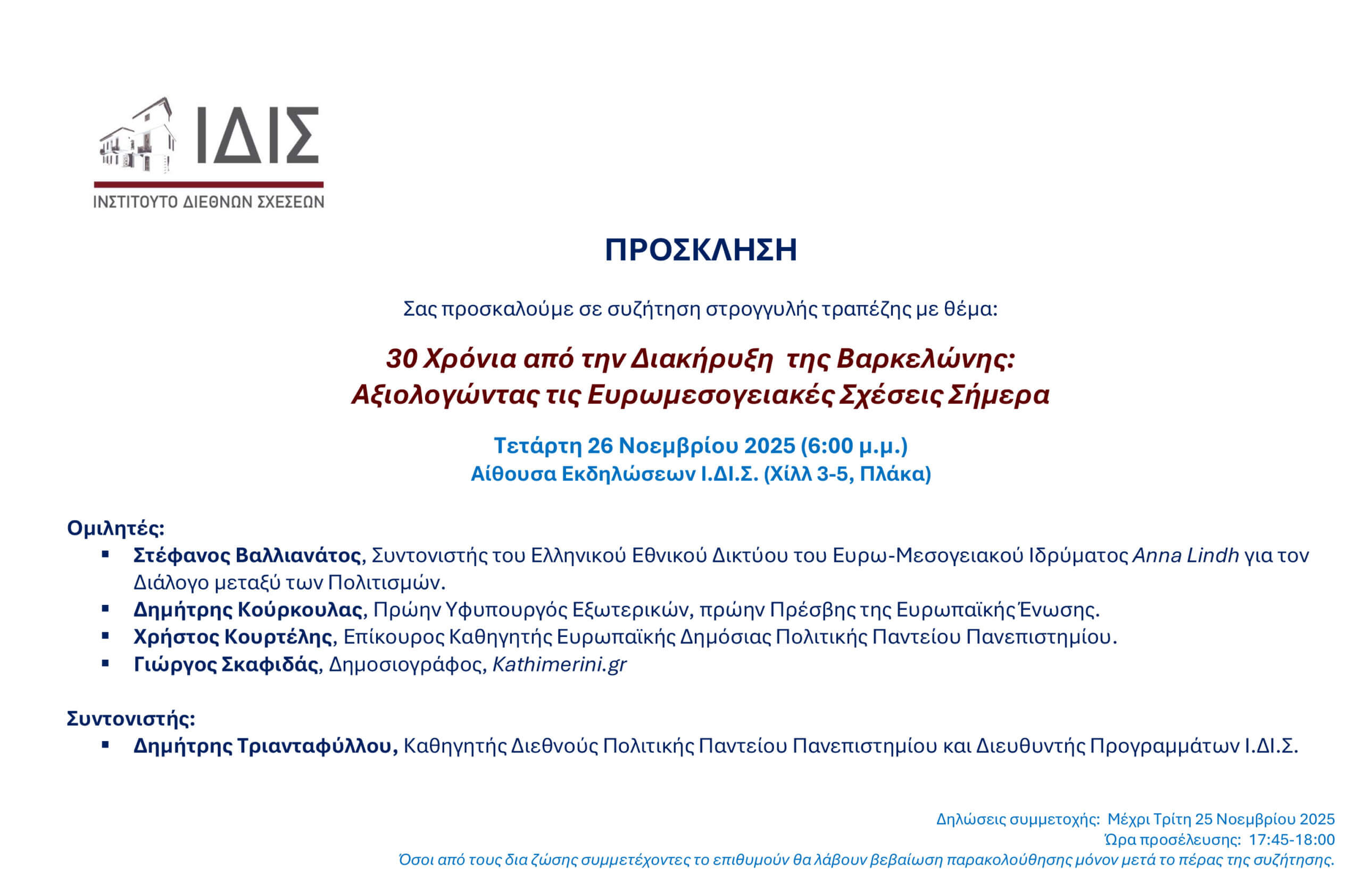 Σας προσκαλούμε σε συζήτηση στρογγυλής τραπέζης με θέμα: