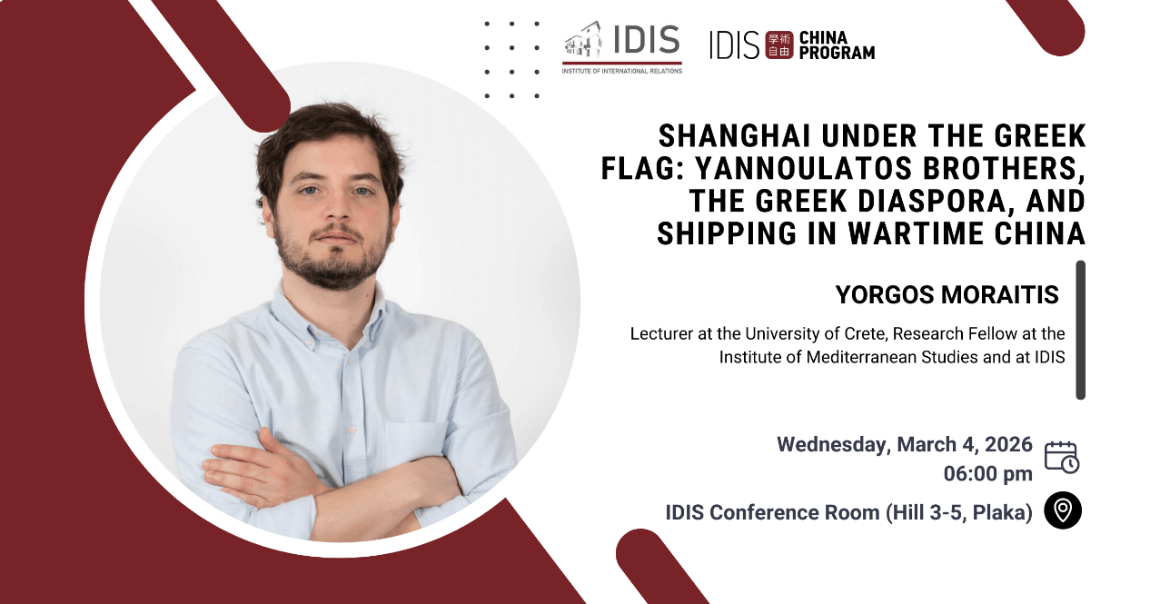 IDIS China Program is pleased to invite you to a lecture titled: Shanghai Under the Greek Flag: Yannoulatos brothers, the Greek diaspora, and Shipping in Wartime China, by Yorgos Moraitis, Lecturer at the University of Crete, Research Fellow at the Institute of Mediterranean Studies and at IDIS.