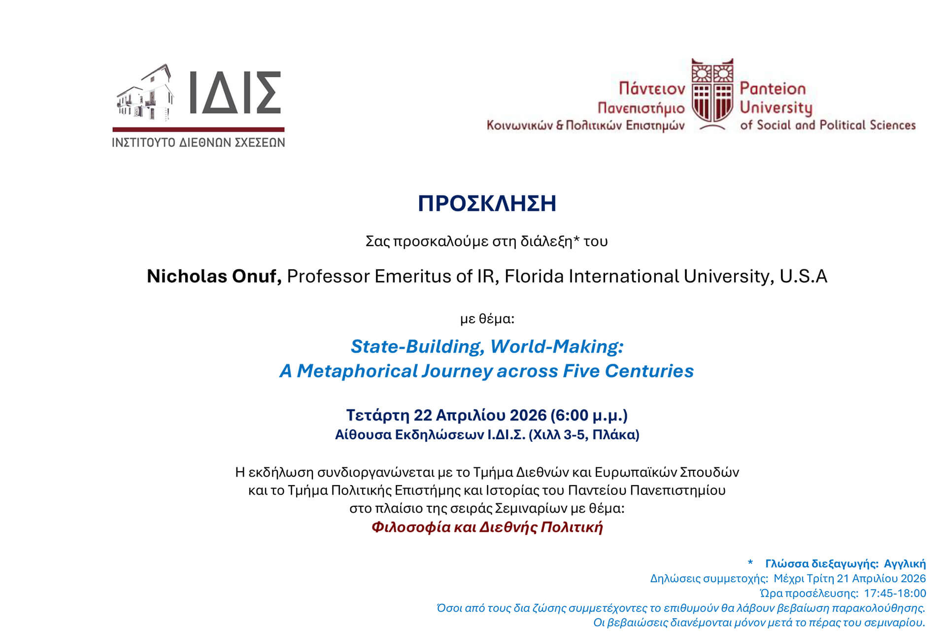 Τετάρτη 22 Απριλίου, 2026 18:00