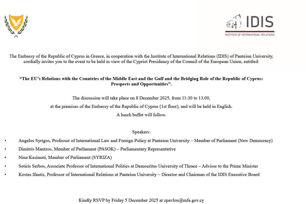 Kindly RSVP by Friday 5 December 2025 at zpavlou@mfa.gov.cy